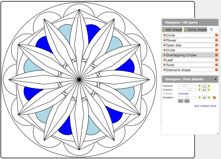 Design your own mandala with our interactive designer. Free! Logged in users can store mandalas and designs in their account, print them and send them as e-card. List, edit and print your mandalas. Manage your account details, such as changing your password. You are automatically logged in via Facebook.